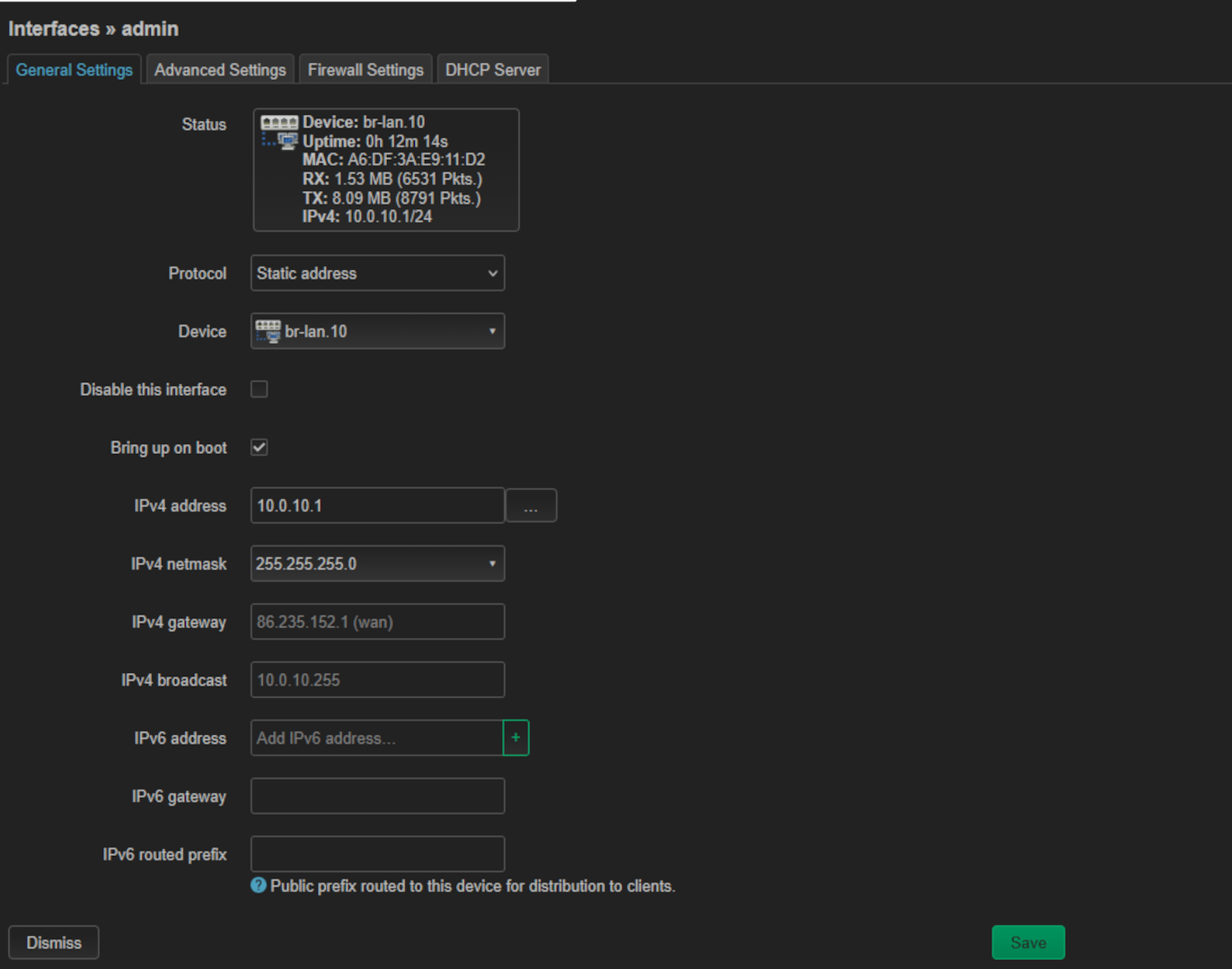 Une fois notre interface ainsi que la zone crée, on vas attribuer le vlan sur notre interface br-lan.