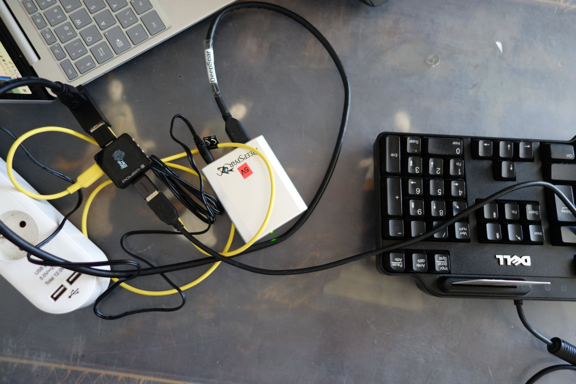 Pas d’USB Stabilizer cette fois-ci, le Power-Z est juste interfacé entre l’ordinateur et le clavier. Dans notre test, un clavier filaire Dell de référence SK-3205.