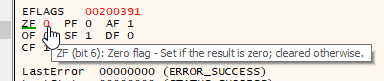 Pour changer l’état du flag de votre saut conditionnel, vous pouvez jouer avec ZF dans la fenêtre de registre