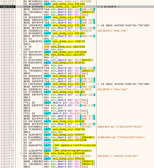 En remontant, un peu plus haut dans la procédure, on remarque des références à la chaîne de caractères « wso.key » On va
