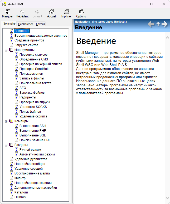 Parmi les fichiers de l’archive, la présence de « wso.chm » : un guide complet rédigé en russe détaillant comment prendre en main le produit.