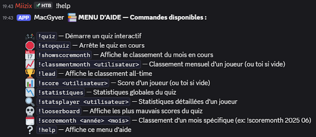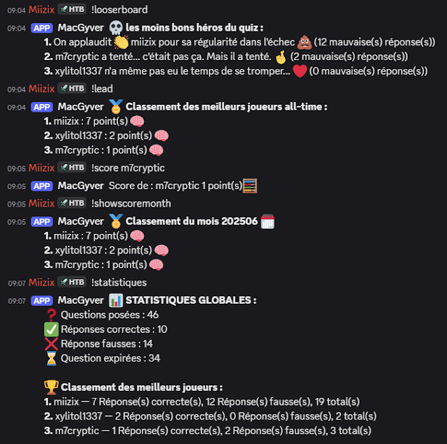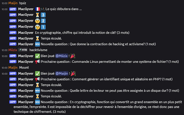 En 2025, on a Discord : l’occasion parfaite de ramener la tradition avec un bot de quiz, histoire de se faire des soirées HackGyver bien fun quand l’envie nous prend, et d'apprendre des choses en s'amusant.