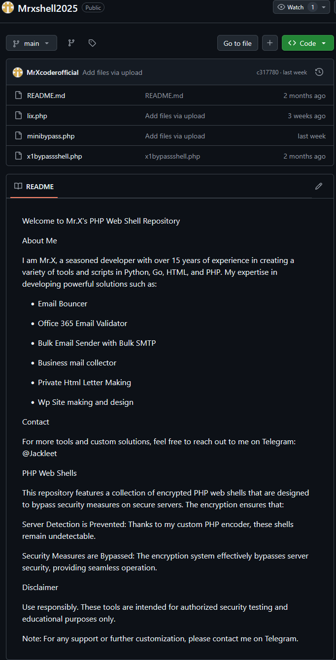 On retrouve dans une porte dérobée utilisée son profil GitHub « MrXcoderofficial »: github MrXcoderofficial