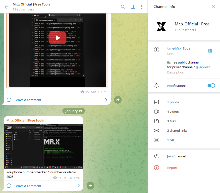 Son compte Telegram est mentionné : « @Jackleet ». C’est donc l’heure de faire de la reconnaissance. Via des bots, on retrouve rapidement ses infos ainsi que les channels auxquels il participe. bot telegram