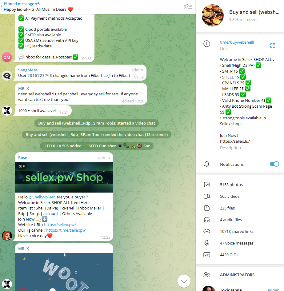 « sellex » a également un groupe Telegram ou « Mr.X » y vend des shells: